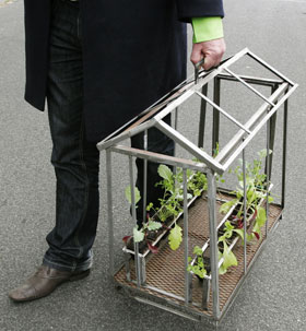 De draagbare kas is een speciaal voor dit project vervaardigd attribuut. De draagbare kas maakt niet alleen verbinding met het roemruchte verleden en heden van Nootdorp maar geeft ook richting aan de toekomst. De kas fungeert als symbool en wil de initiatieven en plannen van bewoners laten wortelen en waar mogelijk tot bloei brengen.
